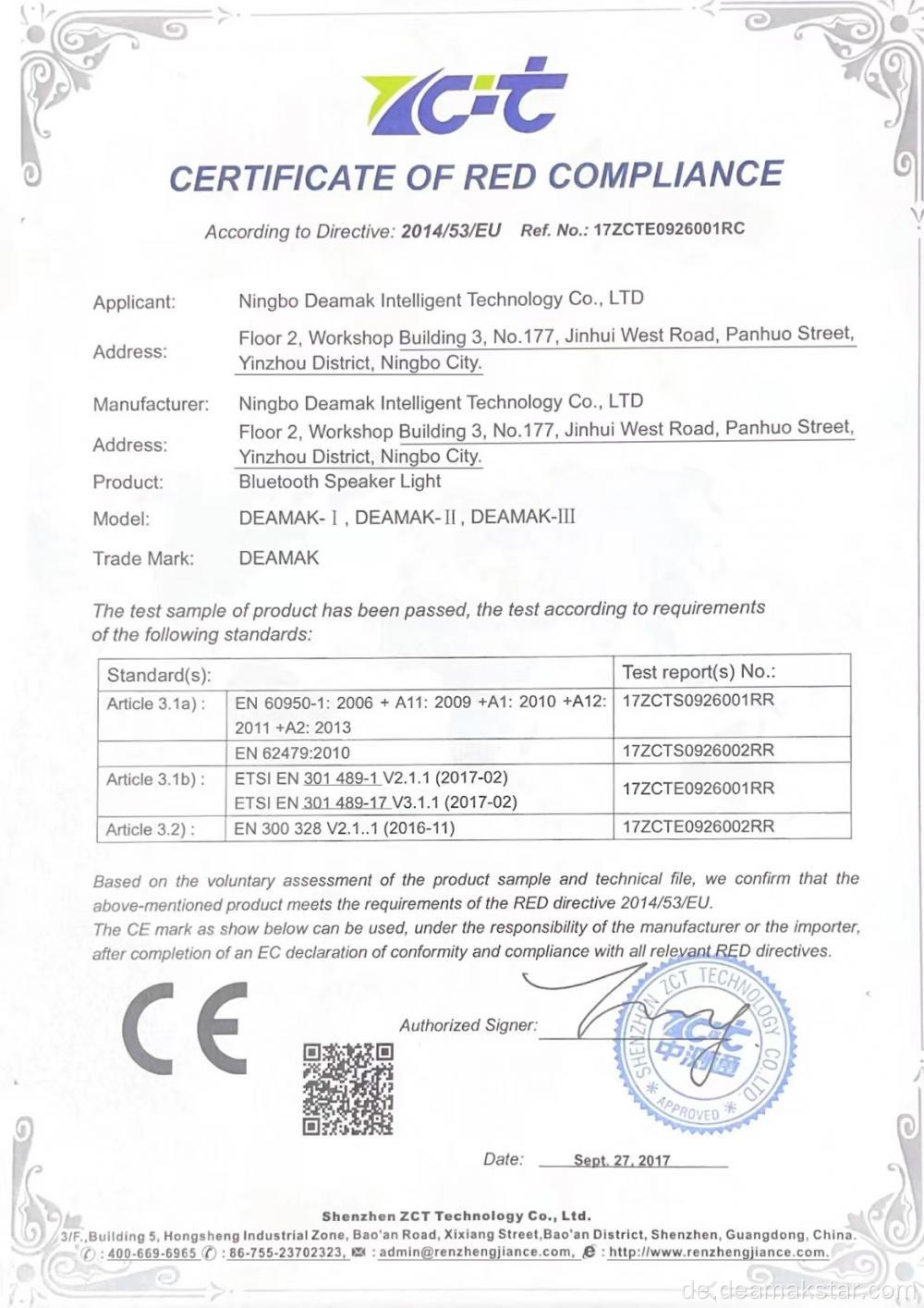 Zertifizierung: CCC, FCC, ce, RoHS